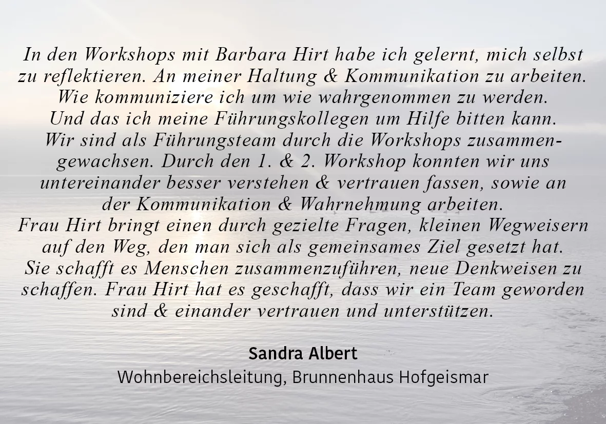 Hallo, ich bin Barbara Hirt und leite ganze Teams und einzelne Menschen hin zu ihrer eigenen Gold-Version.